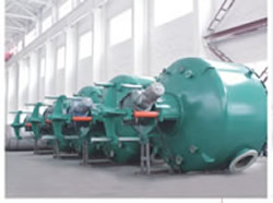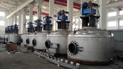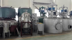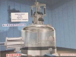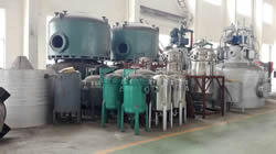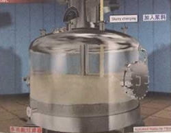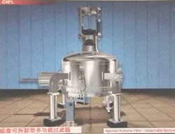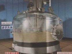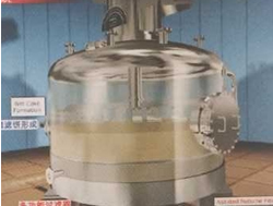 圖①:反應釜中的混懸液靠自身的重力或經(jīng)泵注入到過濾器中,然后在濾液接收裝置中抽真空,濾液接收裝置連接在濾液流出口上。 圖②:濾液通過濾床被抽濾至接收裝置,濾餅逐漸在濾床上形成。 圖③:當大多數(shù)濾液抽出后,濾床上沉積的濾餅可能還含有5%-20%的溶劑,具體情況與混懸液中固體的性質(zhì)有關(guān)。 圖④:首次過濾完成后,如果需要,可噴淋洗滌液,啟動攪拌器反向攪拌,使濾餅重新混懸。 圖⑤:通過操作攪拌器,還可以輕輕地擠壓濾餅,擠出殘余液體。 圖⑥:為了盡可能多地脫除濾餅中的殘留液體或溶劑,過濾器可加上夾套,在其中通蒸汽或熱水加熱干燥。在過濾器的頂部和底部同時抽真空,殘留溶劑揮發(fā),通過接收裝置上的冷凝器濃縮并回收。對有些物料,執(zhí)行上述流程即可,毋須另配干燥器進行干燥。 圖⑦:最后,經(jīng)過攪拌器在卸料方向的旋轉(zhuǎn)和同時的下降運動,攪拌器刮鏟一層一層地順序?qū)V餅刮出,濾餅可從卸料口自動出料。 圖⑧:攪拌器的攪拌漿和刮鏟示意。 紐克多功能過濾器系統(tǒng)具備如下優(yōu)點: 1、系統(tǒng)封閉:此設備是一個全封閉運行的系統(tǒng),能完全避免生產(chǎn)過程中溶劑對空氣的污染,同時能減少因與毒性物接觸而導致操作人員中毒事故的發(fā)生。 2、回收完全:物料和溶劑近乎完全回收,避免因物料遺漏和溶劑揮發(fā)而引起的浪費,具有很大的經(jīng)濟效益,特別是處理物料和使用溶劑價值較高時更是如此。 3、同時干燥:過濾、清洗和干燥能在同一設備中完成。容器壁可以配備加熱套層,從而能夠進行干燥的操作。 4、操作連續(xù):能夠使過濾和干燥在一個連續(xù)的系統(tǒng)內(nèi)進行,毋須處理濕濾餅。在過濾器下可以連接一個干燥器,使?jié)駷V餅直接卸入干燥器,干燥后的產(chǎn)品可以機械傳送至稱量、包裝等工段。 5、節(jié)約人力:一個經(jīng)過簡單培訓的非技術(shù)人員即可以完成操作。開、關(guān)、自動進料、自動出料都毋須技術(shù)人員監(jiān)控。 6、清洗徹底:由于此設備具有自動噴淋和重新打漿的功能,濾餅可以得到非常徹底的清洗。并且洗滌液用量較其它類型設備少,可減少排污量和降低廢水處理費用。 7、清洗生產(chǎn):此多功能過濾器干燥系統(tǒng)裝配有粉塵捕集器,能完全收集干燥后產(chǎn)生的粉塵,可滿足高潔凈度的生產(chǎn)操作要求。 | |